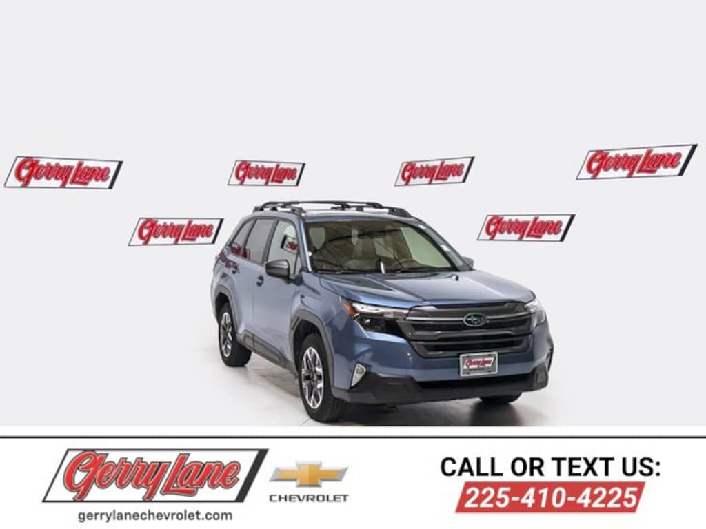 CARFAX One-Owner. Clean CARFAX. Horizon Blue Pearl 2025 Subaru Forester Premium AWD Lineartronic CVT 2.5L 4-Cylinder DOHC 16VALL OF OUR VEHICLES ARE GERRY LANE CERTIFIED We service and recondition all of our vehicles so that you don't have to. We check, service, or replace: All major engine components, Lube, Oil, Filter, All fluids refilled, Air filter, Wiper blades, All interior and exterior bulbs, Front/rear brake pads and rotors, 5/32 tire tread depth or more, Battery, Control arm, Shocks, All belt components, Owner's manual, Engine info decals, and more. So, rest easy!Priced below KBB Fair Purchase Price! 26/33 City/Highway MPGServicing all of your automotive needs with a full service, parts, and body shop department. #1 Chevrolet dealer in Baton Rouge for 32 consecutive years! Free oil changes for the life of owning your vehicle when purchasing from our dealership. See dealer for details.
